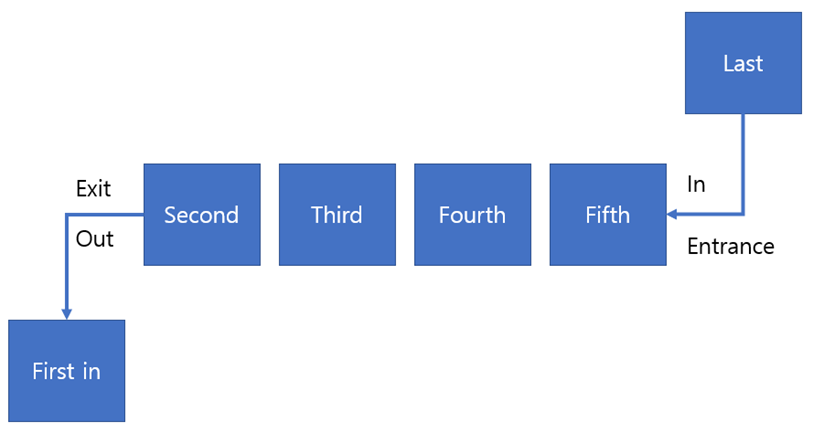 그림과 같이 입구가 하나가 있기 때문에 마지막에 입력 되었던 값이 첫번째로 출력되는 것을 확인 할 수 있습니다.